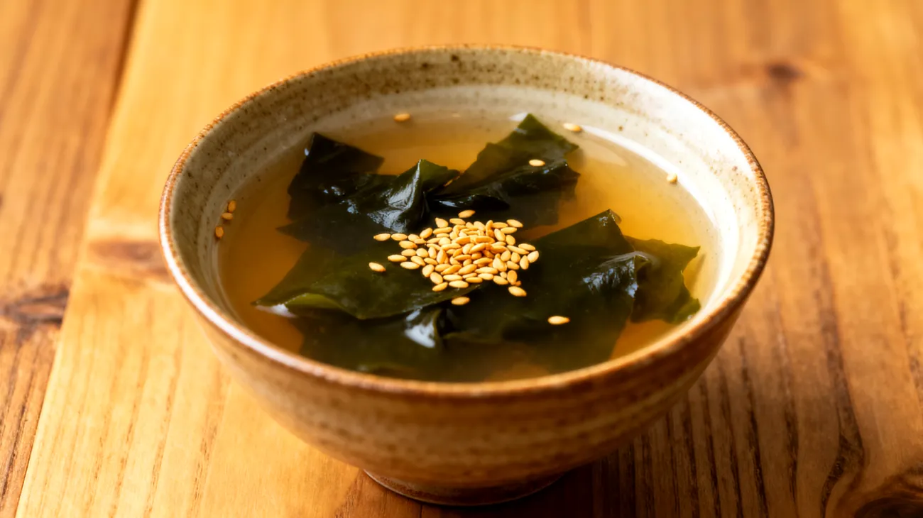 Die zarten, dunkelgrünen Wakame-Algen sind mehr als nur eine geschmackvolle Einlage. Sie ergänzen die Miso-Suppe mit weiteren wertvollen Nährstoffen und verleihen ihr eine besondere Textur. Das in Algen natürlich vorkommende Jod kann die Schilddrüsenfunktion unterstützen, die wiederum den Stoffwechsel und die Schlaf-Wach-Zyklen beeinflusst.